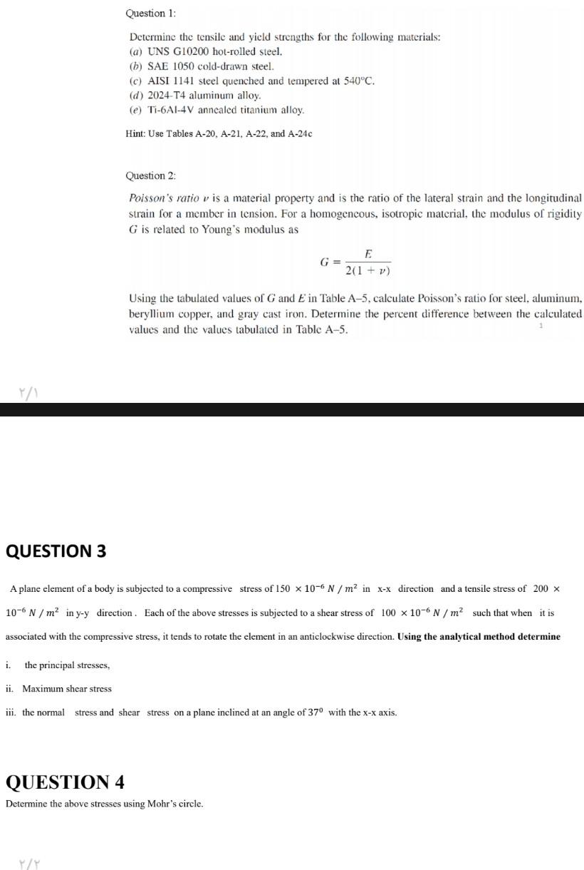 | Title: Question 1 Determine The Tensile And Yield Strengths Chegg |